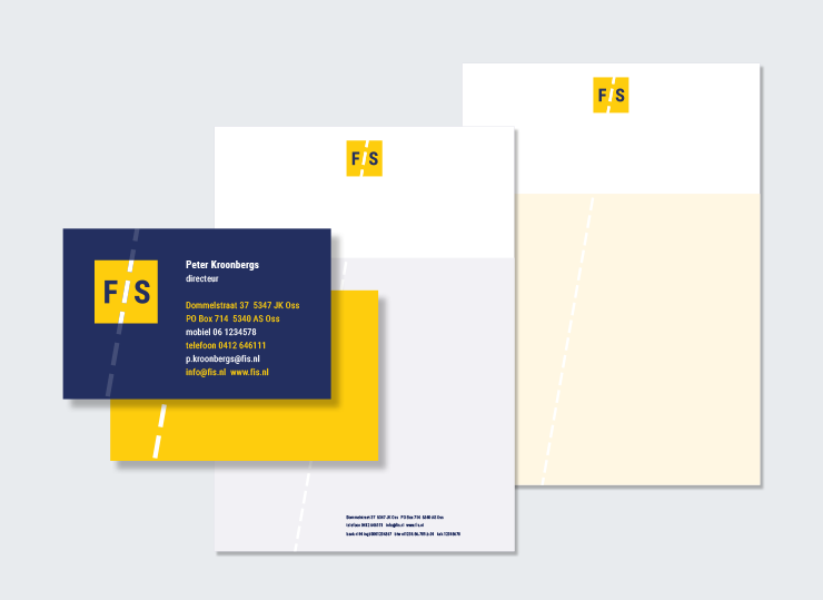 • FIS visitekaartje plus achterzijde, briefpapier en volgvel